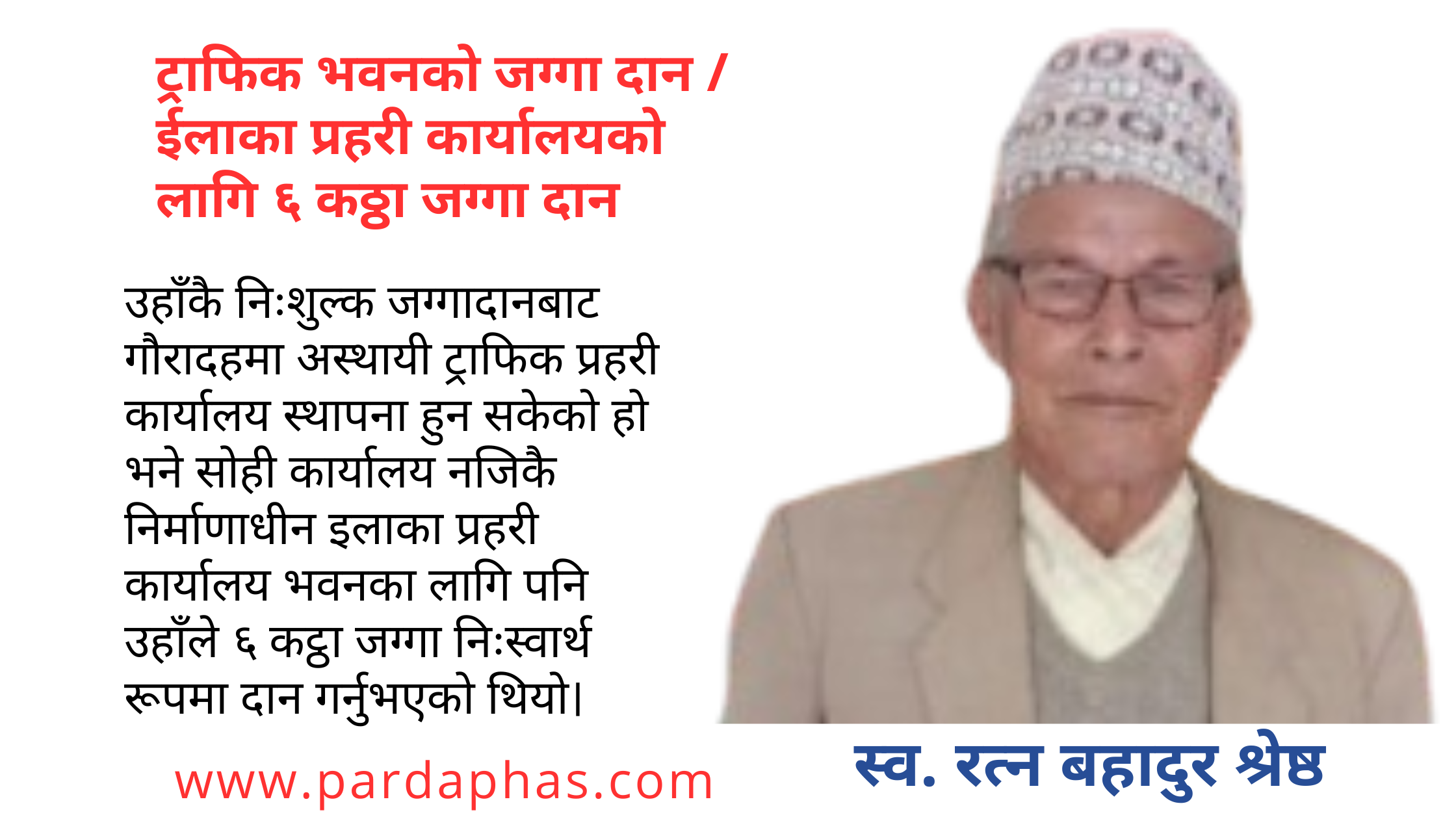 प्रहरी कार्यालयको जग्गा दाता समाजसेवी रत्नबहादुर श्रेष्ठको निधन