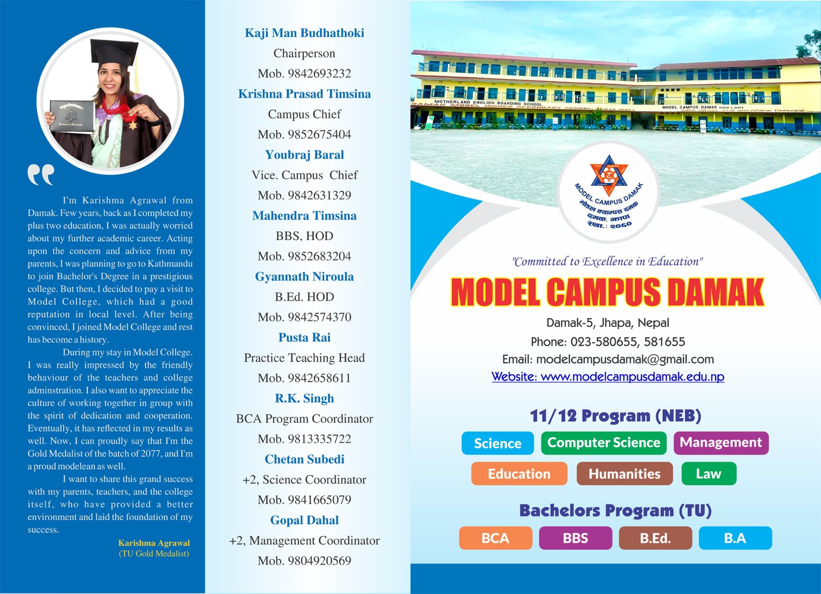स्थानीयबासीका अनुसार, दमक क्षेत्रकै पुरानो र विश्वासिलो कलेजको रुपमा स्थापित मोडेल क्याम्पसले शिक्षा क्षेत्रमा लगातार सुधार गर्दै आएको छ।